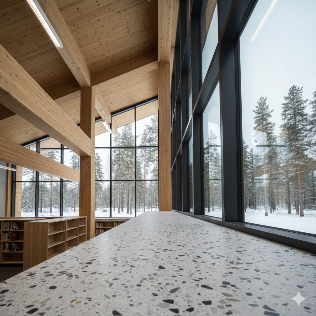 Valmistamme ja asennamme mosaiikkibetonisia ikkunalautoja alan yleisissä sävyissä.