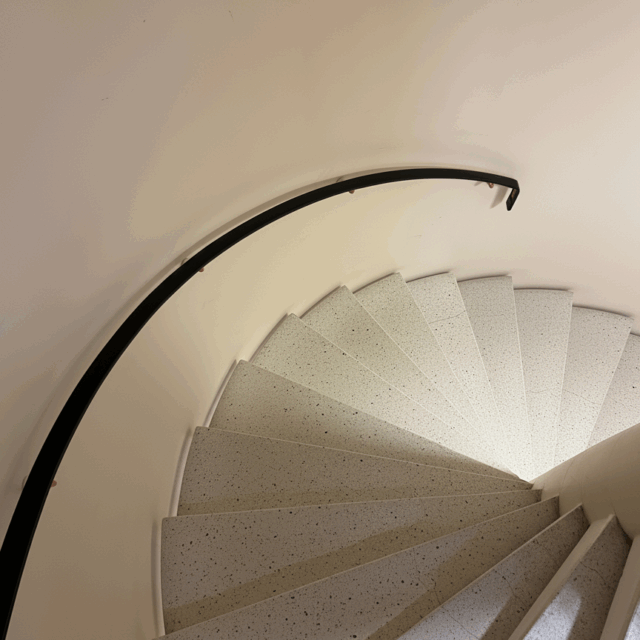 Kappelekasattava betoninen viisarikierreporras. Askelman pituus päätettävissä kohteen mukaan. Vakio pilarin paksuudet 400mm, 500mm ja 600mm.